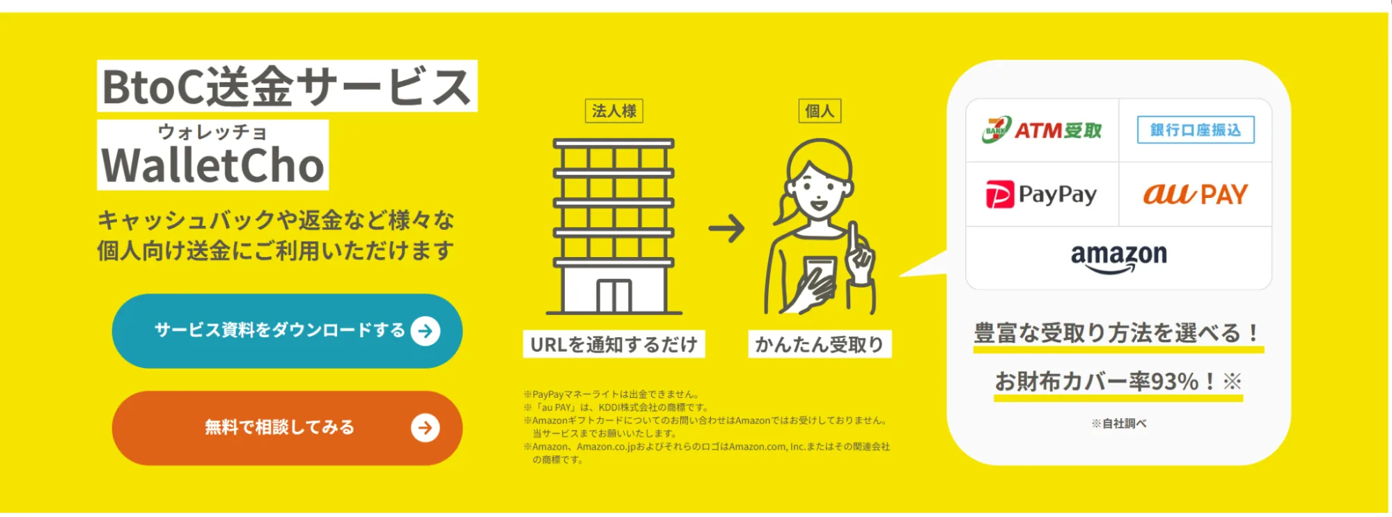 これらの返金業務にまつわるあらゆる面倒を解決し、担当者の負担を削減できるのがBtoC送金サービスの「ウォレッチョ」です。